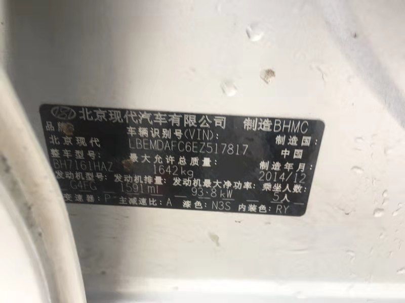 2014年12月現(xiàn)代朗動1.6L自波天窗7.2萬元